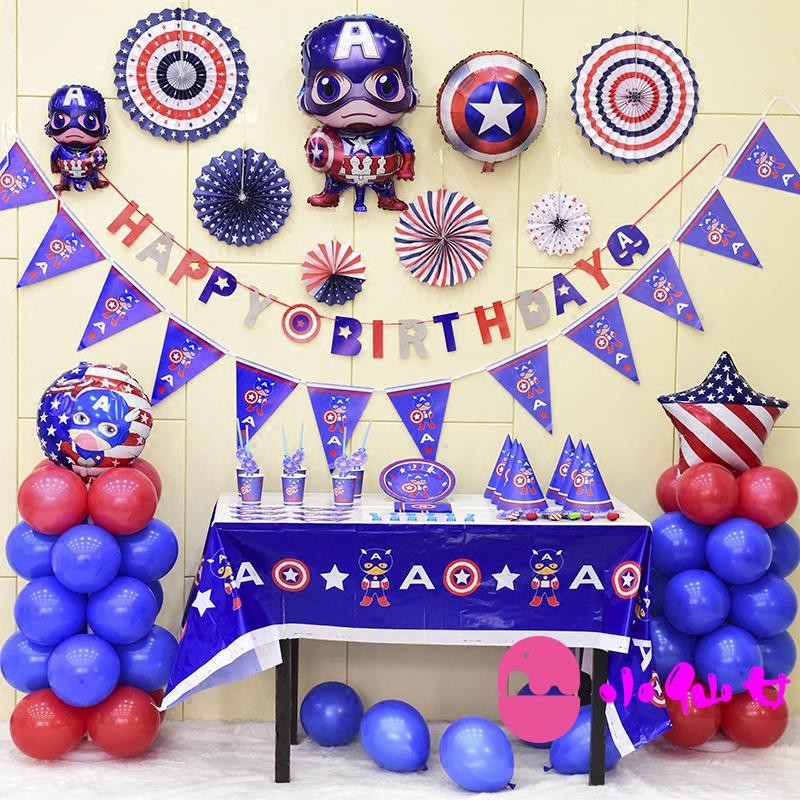 Captain America Birthday Theme Dress Up Birthday Party Balloon Package Child Baby Age Decoration Sup Shopee Philippines